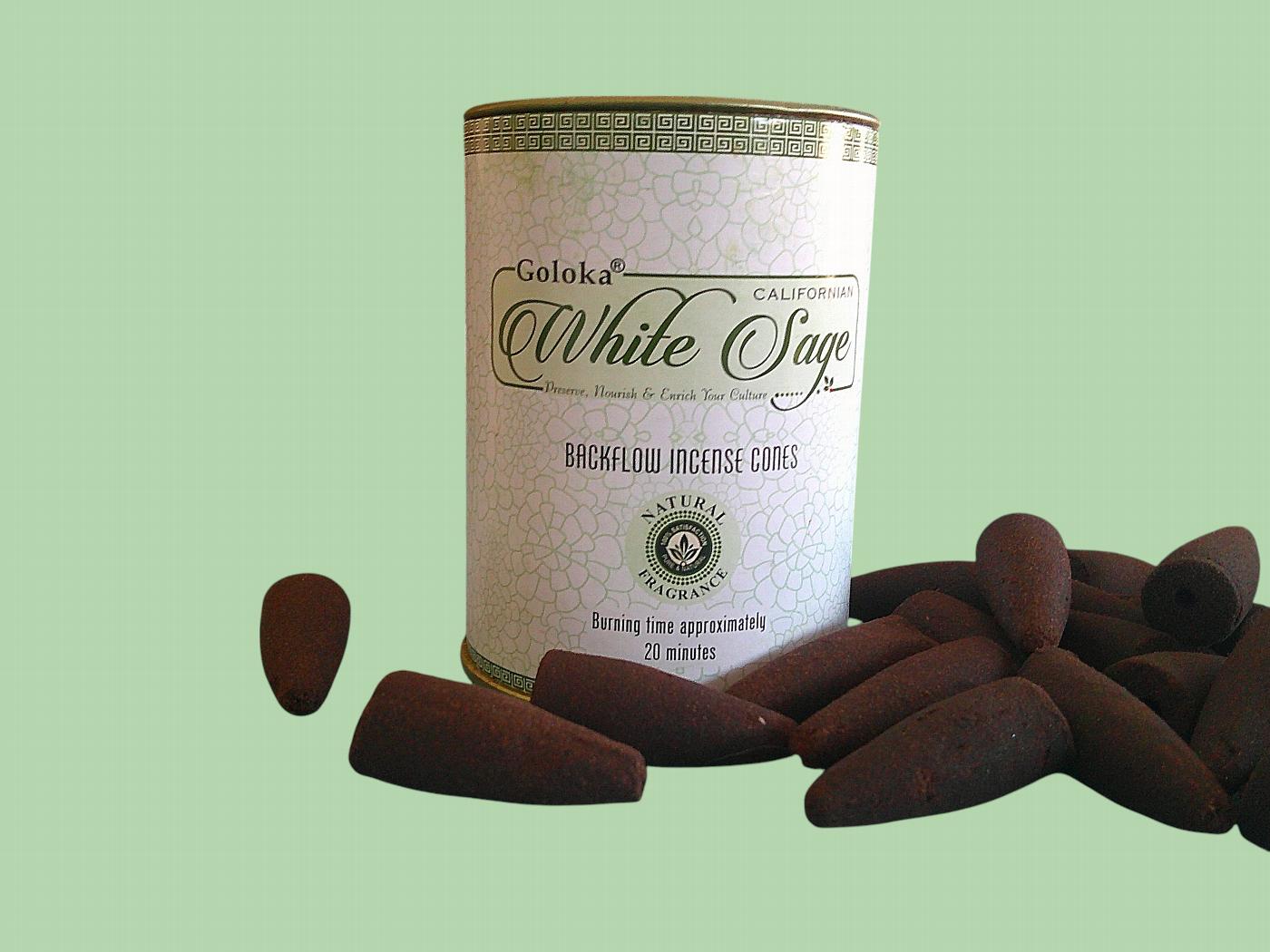 White sage backflow incense cones – cleanse your space, clear negative energy, and invite calm with this sacred, purifying aroma used in spiritual rituals for centuries