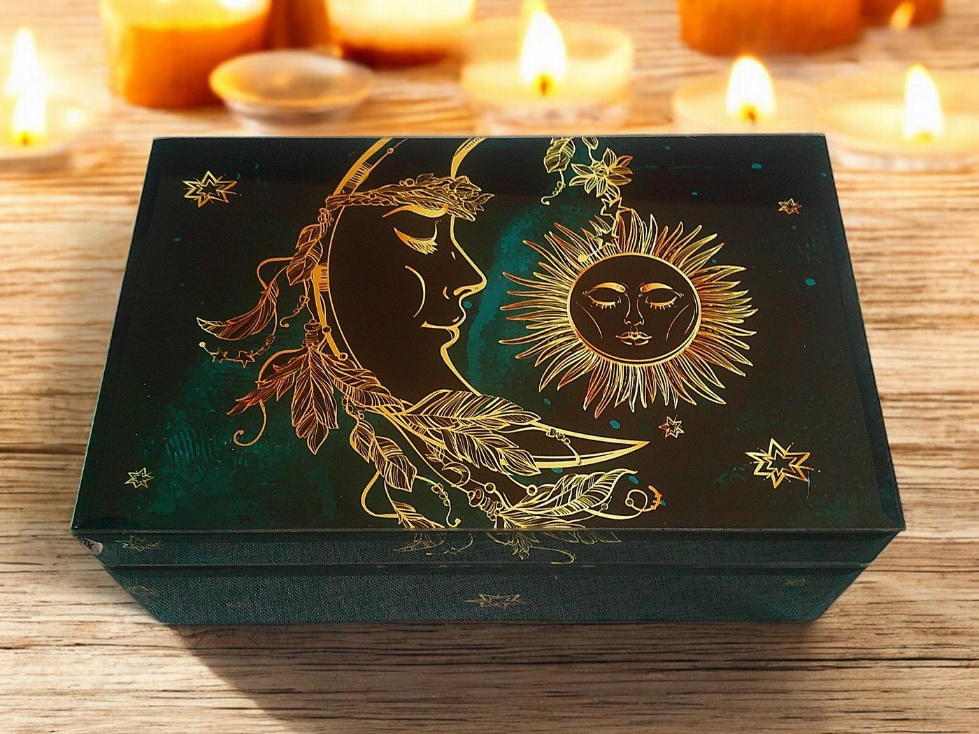 Let your spiritual treasures rest under the watchful gaze of the moon and stars. This box isn’t just storage—it’s a celestial invitation to honour your rituals with beauty and intention.