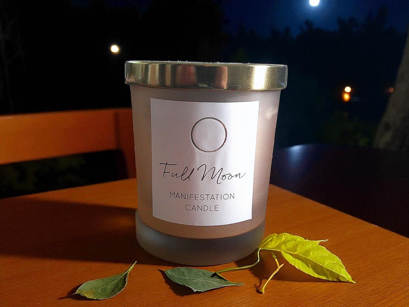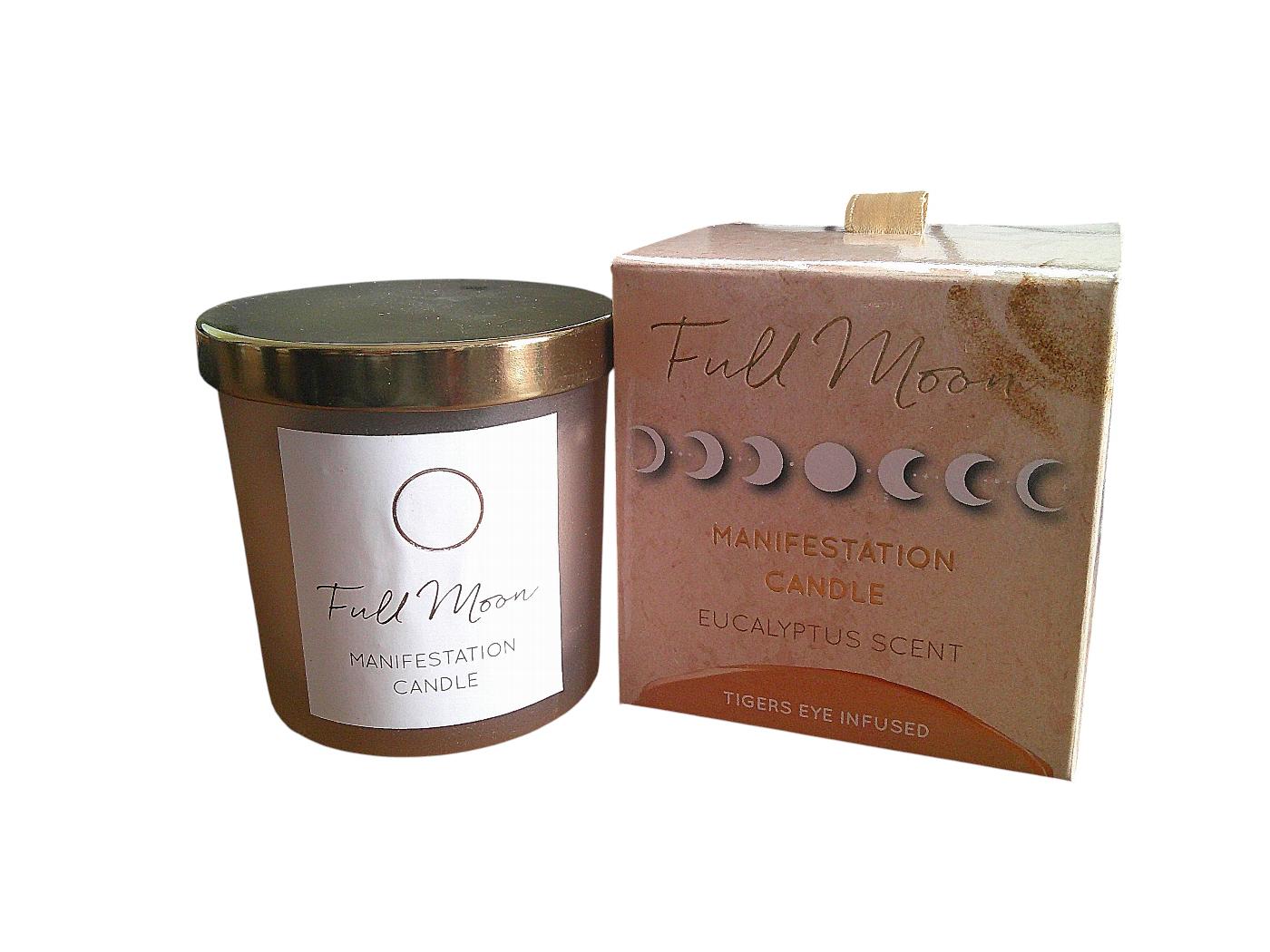 Manifestation Candle Full Moon, Eucalyptus and Tigers Eye