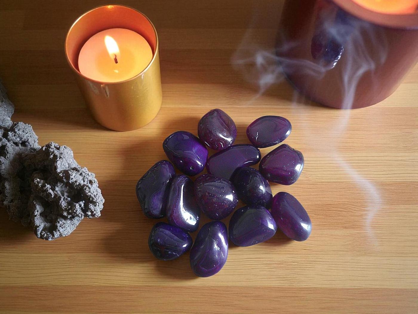 This purple agate tumblestone is thought to have gentle yet powerful healing properties. It supports the third eye and crown chakras, making it ideal for enhancing intuition, mental clarity, and emotional calm. Use it during meditation, energy healing, or stress relief practices, or carry it with you throughout the day to help center your thoughts and protect your aura from emotional overwhelm. Whether you're seeking peace, protection, or a deeper spiritual connection, purple agate is a supportive and grounding stone to have in your collection.