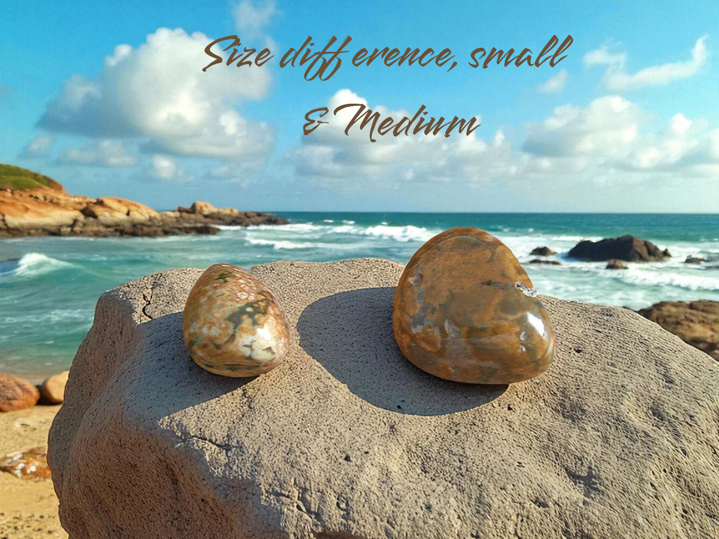 Ocean Jasper Tumblestones — beautifully patterned crystals that promote joy, emotional healing, and inner peace. With swirling hues of green, cream, and coral, these calming stones support heart chakra healing, stress relief, and mindful self-reflection.