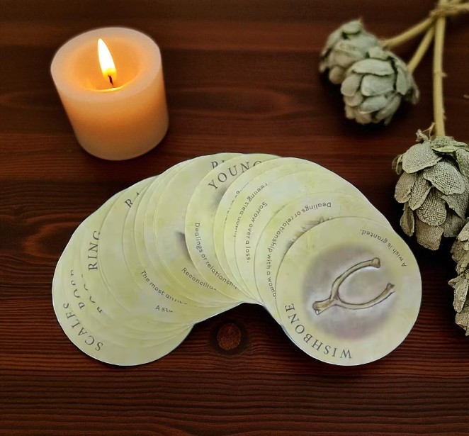 The deck is designed to help you tap into your intuition, offering clarity, guidance, and gentle wisdom for everyday questions and deeper life insights. Whether used alone or alongside tarot or oracle cards, the Tea Leaf Oracle provides a versatile tool for self-reflection and spiritual growth. Each card carries a symbol traditionally associated with fortune telling—such as animals, flowers, or objects—paired with easy-to-understand meanings, making it suitable for both beginners and experienced readers.